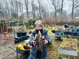 Terwijl op landgoed Belvédère in Overveen de eerste sneeuwklokjes alweer de grond uit plopten, wachtten de witlofstronken in onze moestuin daar geduldig onder een enorme berg aarde. En toen kwam daar donderdag souschef André met een grote schep om de laatste oogst van de winter op te graven. Het resultaat: een flinke hoop lelieblanke stronkjes, rechtstreeks uit de volle grond. Ze gaan maandag 16 februari in een spannend gerecht: witloftaart met ansjovis en citroen, een beproefd recept van mijn leermeester Eke Mariën. Als toetje een good old Brits geïnspireerde trifle, met cake, fruit en custardroom. Geef je hier op voor maandag 16 februari 10.00 uur. Hoofdmaaltijd 12,50 euro, toetje 4 euro.