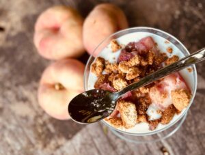 Ik kwam thuis van vakantie en de zaadjes die ik in het koude voorjaar in de aarde had gestopt waren uitgegroeid tot flinke oranje pompoenen in onze moestuin op landgoed Belvédère. Ik roosterde ze, mengde ze met geitenkaas en verse salie uit de tuin en rolde ze als vulling in de cannelloni-pasta. Die staat op maandag 18 augustus op het menu, met een romige béchamelsaus en verse sla, à la minute geplukt. En nu het hoogzomer is, zijn de perziken op hun allerlekkerst. Op maandag gaan ze in het toetje, gemarineerd in Italiaanse likeur, met pannacotta en geroosterde biscotti. Welkom thuis! Geef je hier op voor maandag 18 augustus 10.00 uur.